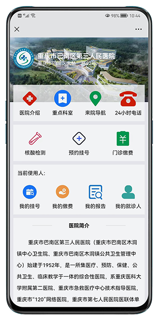 預(yù)約掛號 + 門診/住院繳費 + 報告查詢